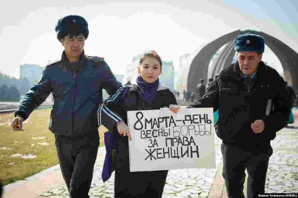 8-март - Аялдардын эл аралык күнүнө карата Бишкекте «Аялдардын шериктештик маршы» өтмөк. Бирок алгач белгисиз кишилер келип уюштуруучулардын баракчаларын айрып, чыр чыгарышкан. Андан соң милиция уюштуруучуларды кармай баштаган.