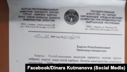 Мамлекеттик комиссиянын колуна өкмөттүн ошол токтомунун аткарылышы боюнча Айлана-чөйрөнү коргоо жана токой чарбасы агенттигинин ошол учурдагы статс-катчысы (2009) Абдымитал Чынгожоевдин колу коюлган кызматтык кат кокусунан тийип калган. 2009-жылдын 9-сентябры менен катталган бул кызматтык катта «өкмөттүн №336-токтомун аткаруу максатында «Сары-Чат - Ээр-Таш» мамлекеттик коругунун түштүк чек арасына өзгөртүүлөр киргизилип, анын 4380 гектар жер аянты «Кумтөр Оперейтинг компани» ишканасына жаратылыш байлыгын иштетиш үчүн өткөрүлүп берилгени» көрсөтүлгөн.