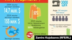Кыргызстандагы тигүү цехинин саны 3000. Анда 150-300 миңдей жумушчу иштейт. (инфографика)
